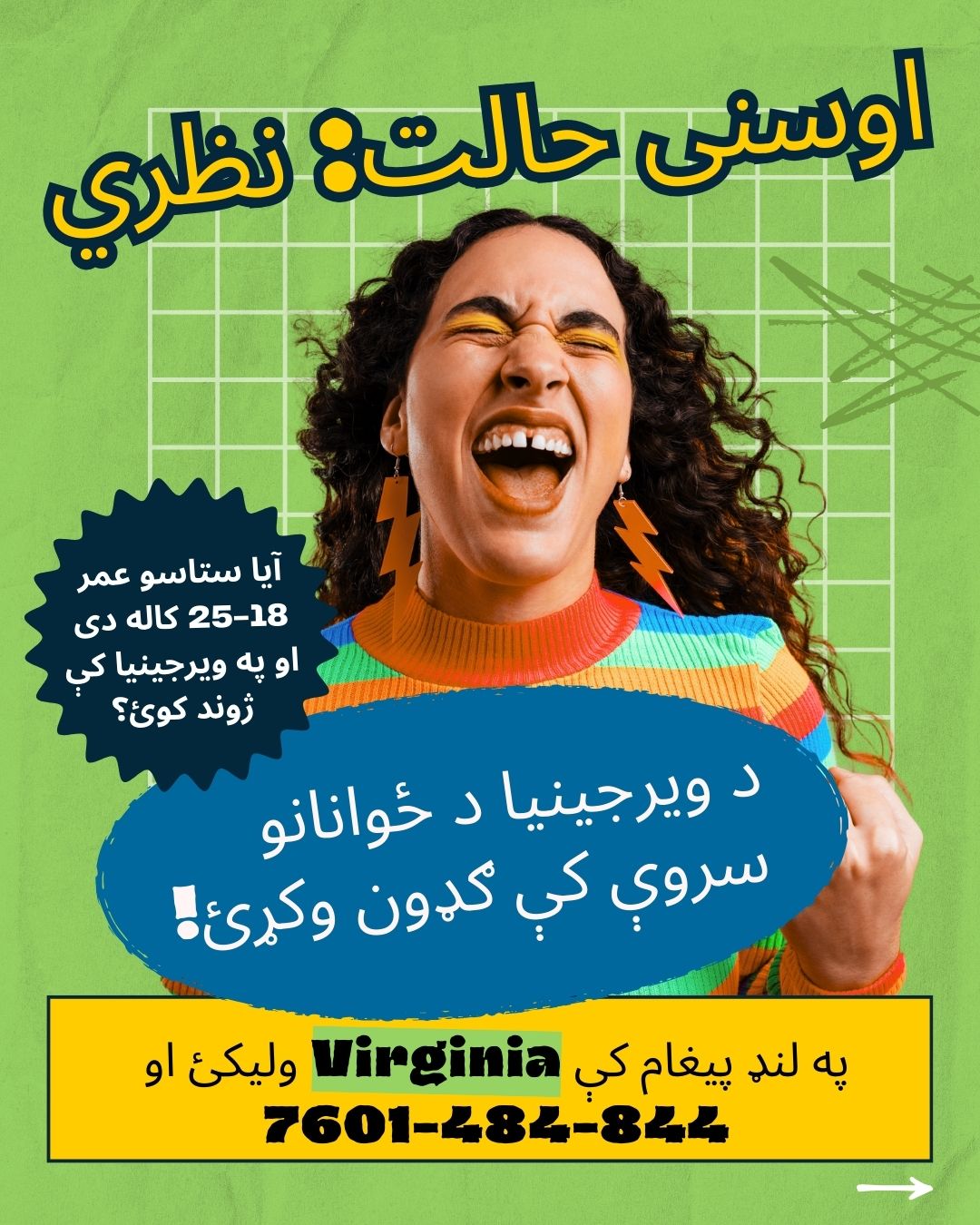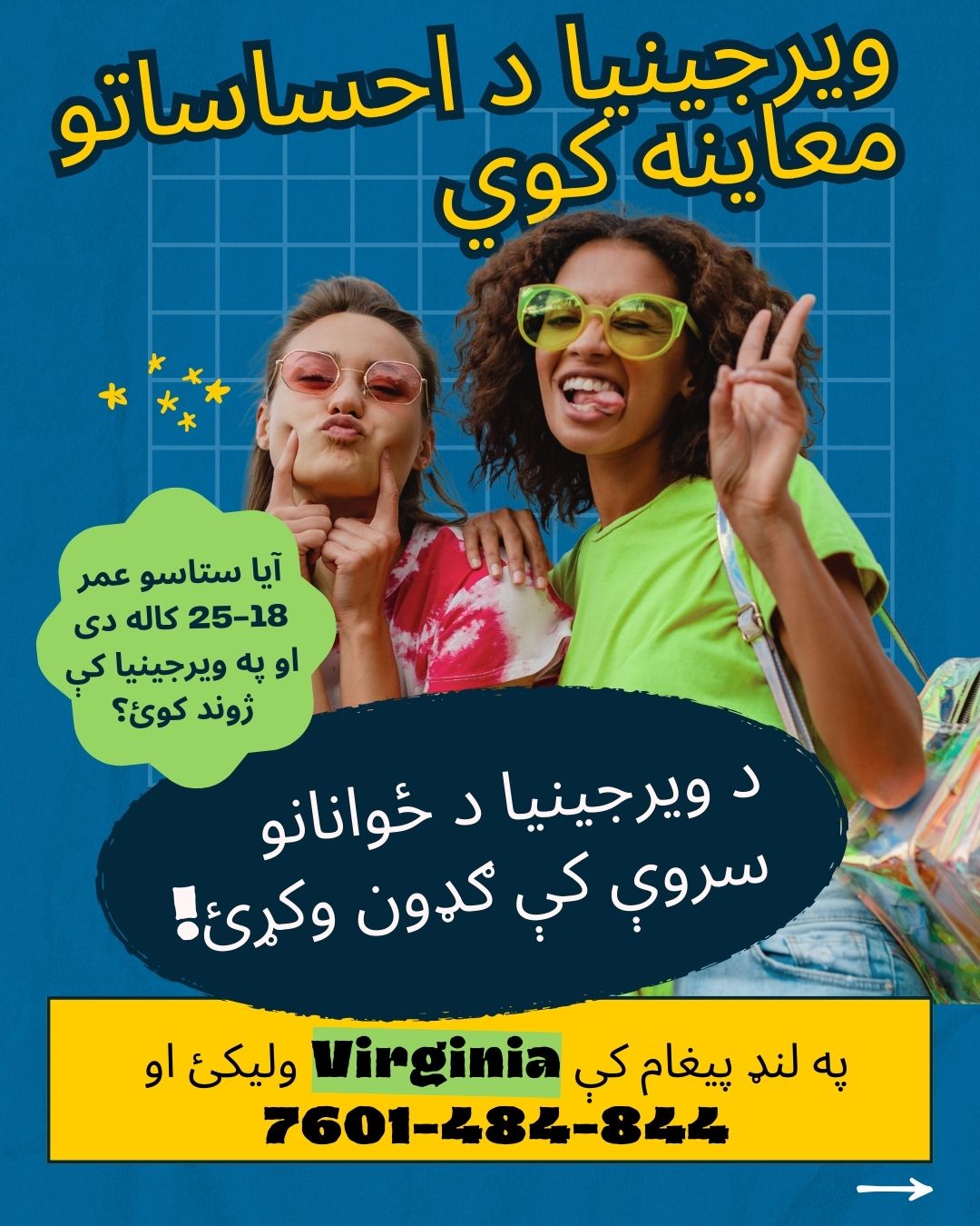 مهربانی وکړئ د بریښنالیک په YAS@omni.org او د لینک غوښتنه وکړئ او ووایاست چې تاسو د سروې په اړه څه ډول اوریدلی او په ویورجینیا کې چیرته ژوند کوئ .