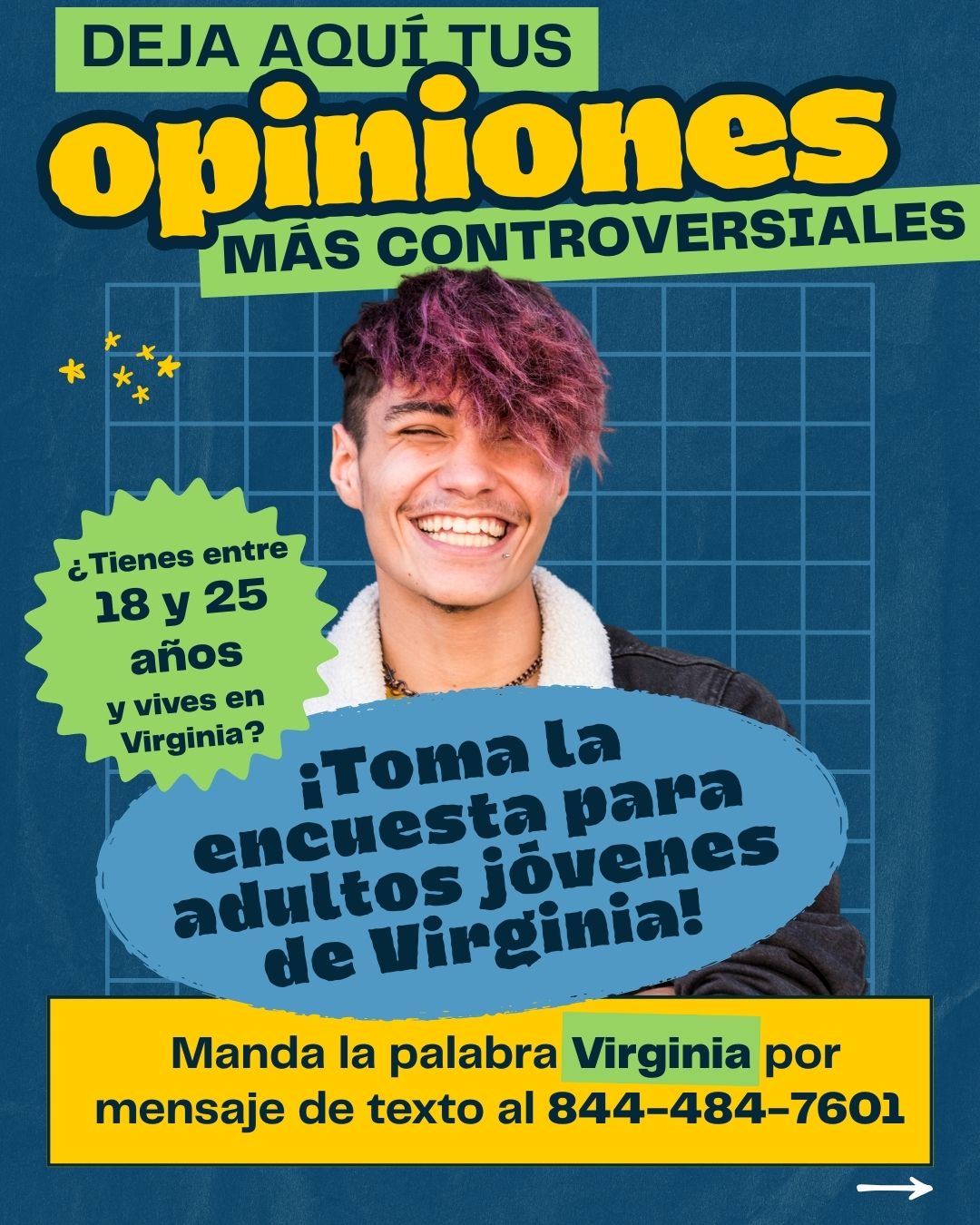Por favor envíe un correo electrónico a YAS@omni.org para solicitar un enlace e incluye como escuchaste sobre esta encuesta y en cual parte de Virginia vives.